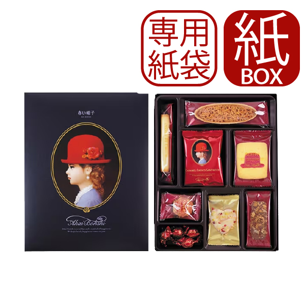 手提げ袋付 赤い帽子 ブルー 8種20個入 (紙箱仕様) クッキー 詰合せ お菓子 【 AKAIBOHSHI _