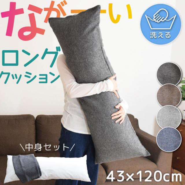 クッション ロングクッション ソファークッション 抱き枕 枕 大きい 約43×120cm クッションカバー 中身 セット お昼寝 おしゃれ 北欧 デニム風 男女兼用 プレゼント 長い 新生活