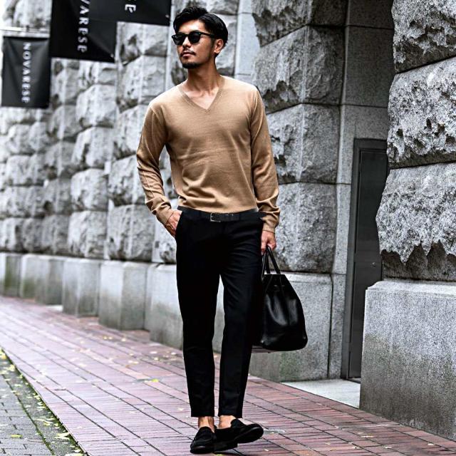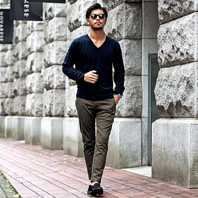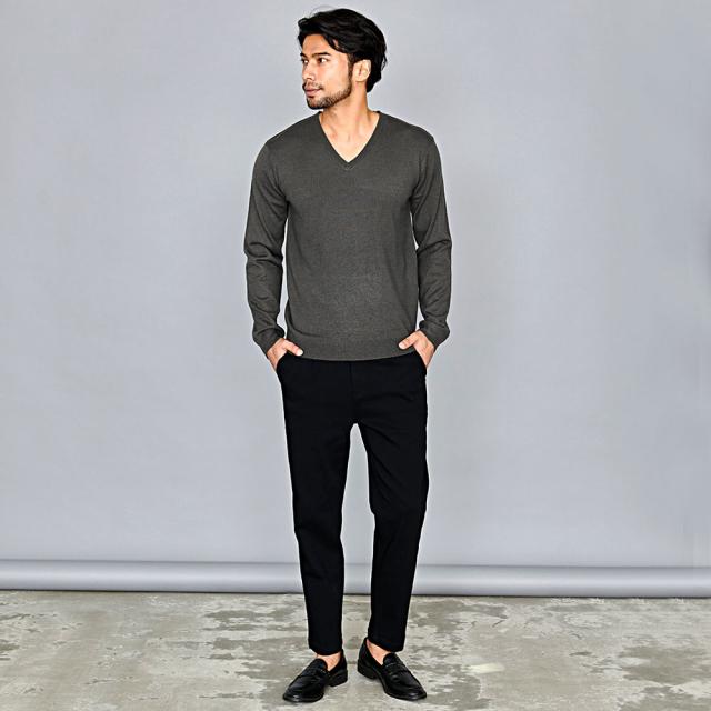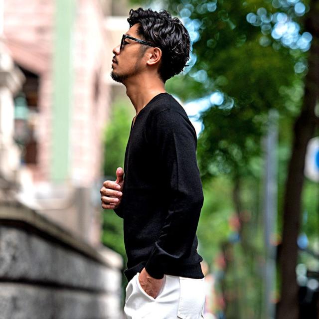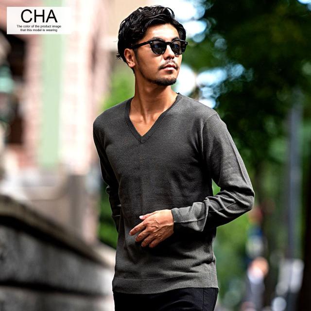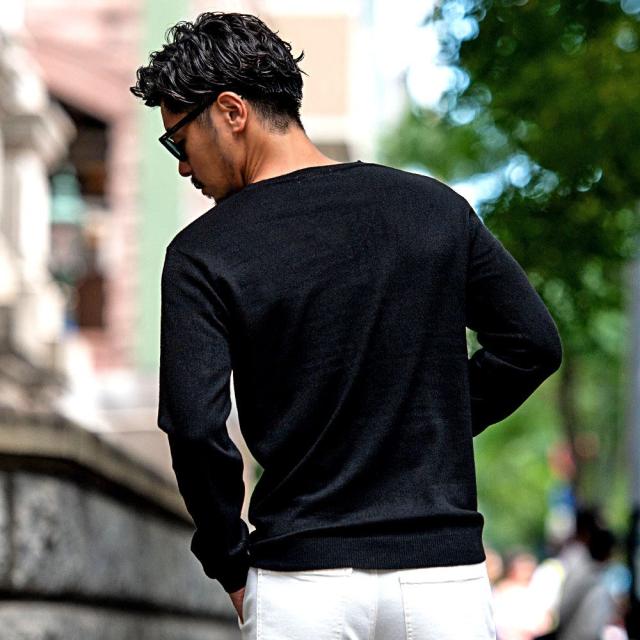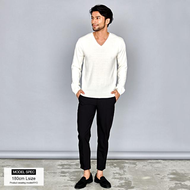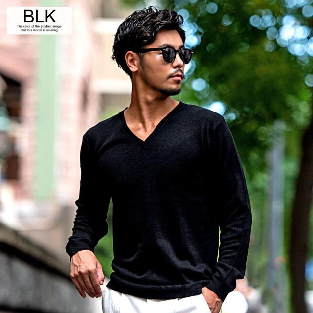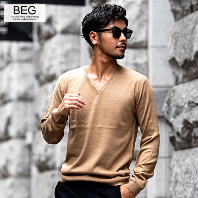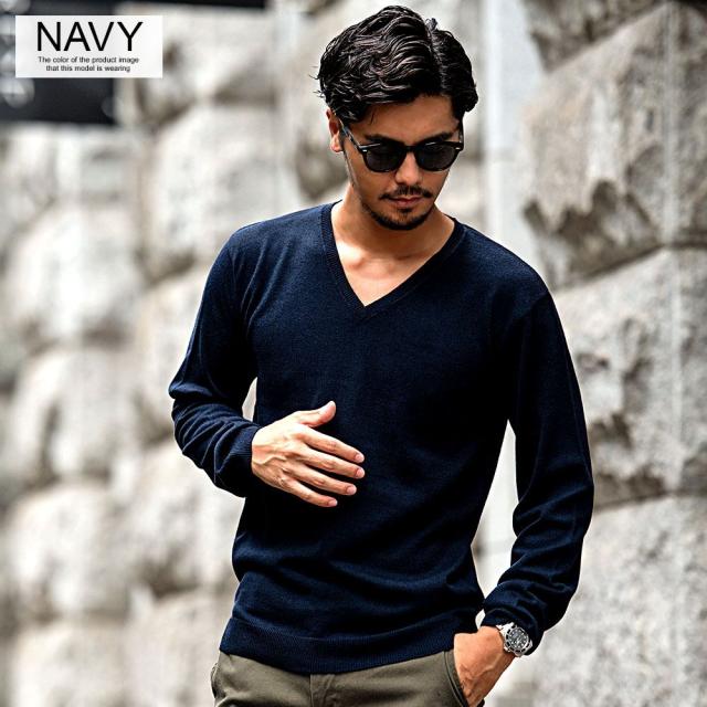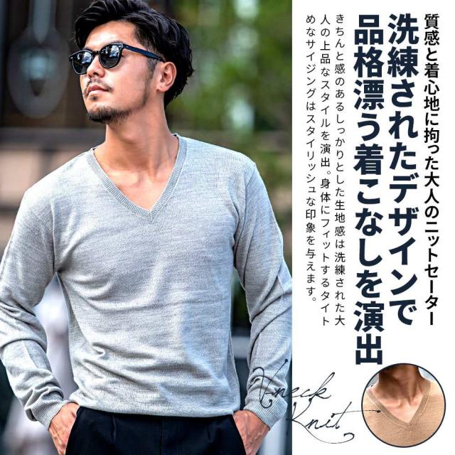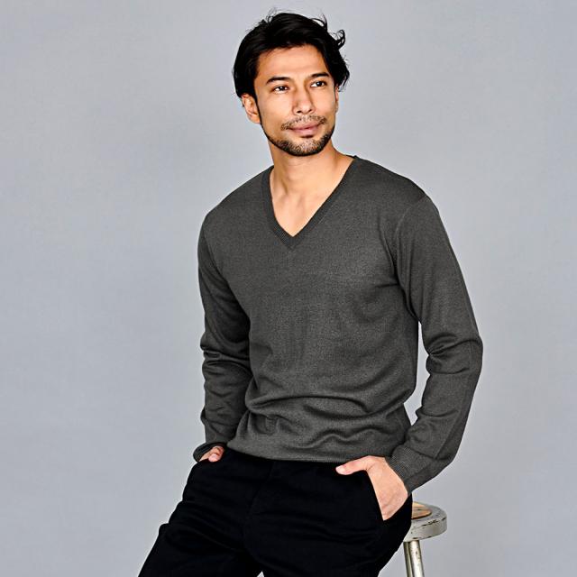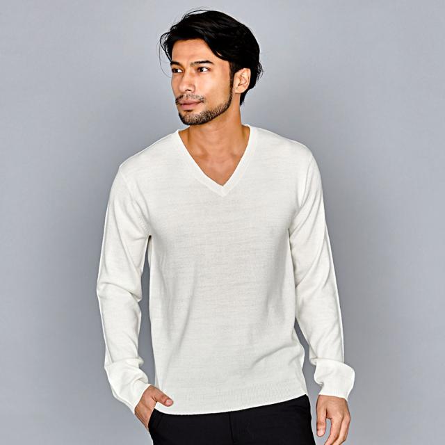 心地良い肌触りでカシミヤのような風合いのニット生地を採用したVネックセーター。