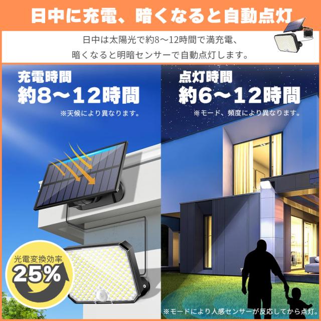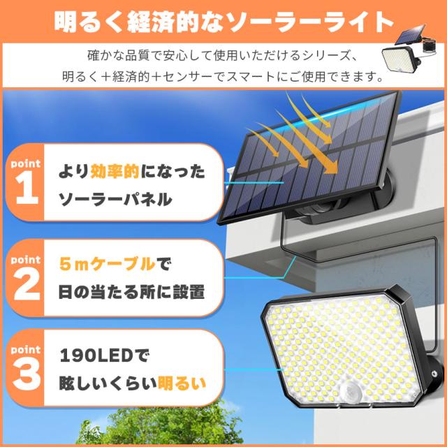 ●とっても明るい!超高輝度センサーソーラーライト●防犯対策にもうってつけ!センサーが役立つ!もうちょっと明るければ…ソーラーだからしょうがないか...太陽光の当たらないところに設置したい...そんなお悩みにぴったり!