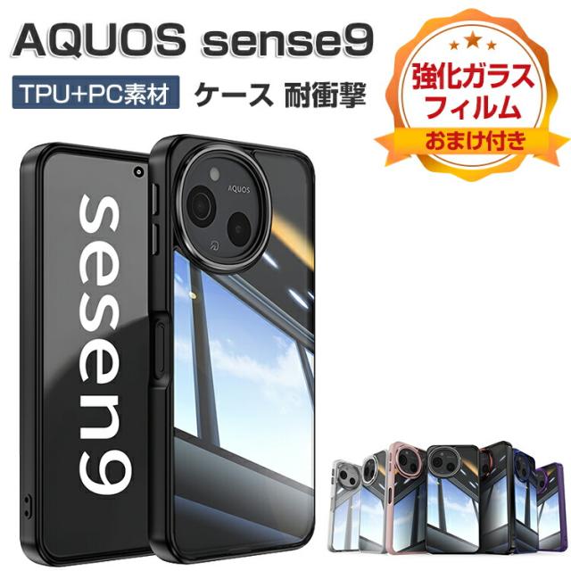 SHARP AQUOS sense9 SHG14/SH-53E ケース クリア 耐衝撃 カバー 保護ケース タフで頑丈 2重構造 TPU&PC 衝撃吸収 落下防止 透明 背面カバー おしゃれ カッコいい 衝撃に強い スマホ ケース CASE アクオス センス9 SHG14 ケース SH-53E カバー 強化ガラスフィルム おまけ付き