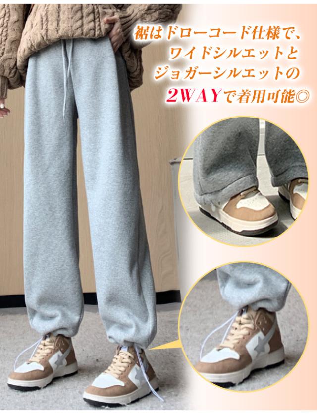 春新作 裏起毛 ワイドパンツ レディース スウェットパンツ ジョガーパンツ ロングパンツ 暖パンツ カジュアル 2WAY 保温 無地 ズボン ゆったり 秋 冬 ポイント消化