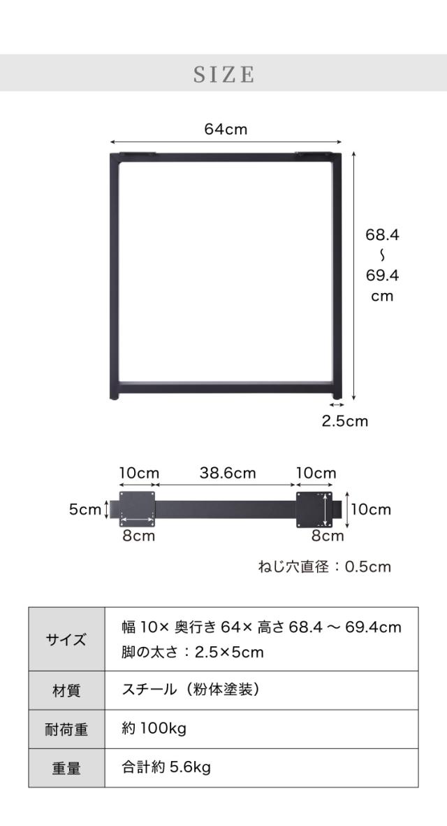 テーブル、脚、パーツ、ダイニングセット、ネジ付き、ネジ、脚のみ、黒、ブラック、鉄脚、アンティーク、自作、アイアンレッグ、スチール脚、取り替え、取り換え用、リビング、デザイン、組み立て自由、レイアウト、高さ68.4cm、高さ69.4cm、北欧