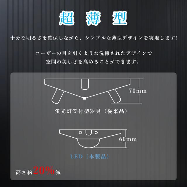 - スリムなデザインにより、空間を圧迫せず、スタイリッシュな印象を与えます。狭い場所や天井が低い部屋でもスムーズに 取り付けることができ、限られたスペースを有効に活用できます。