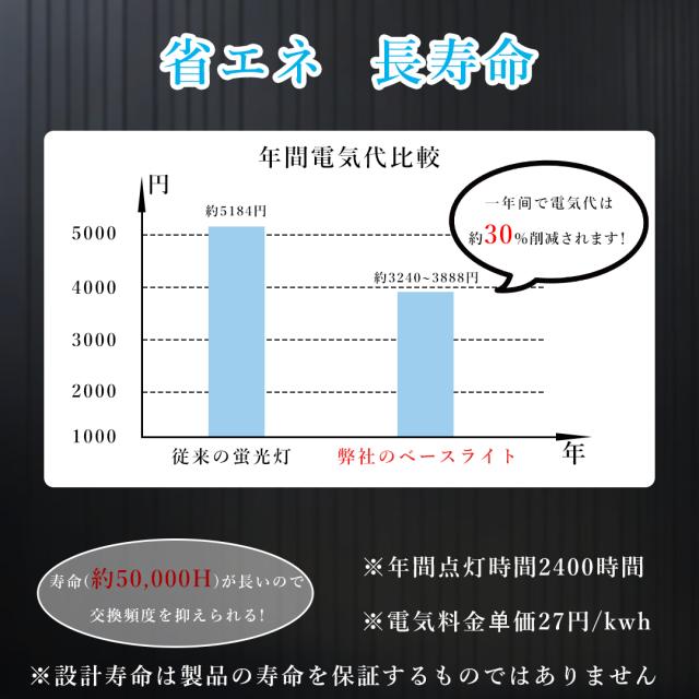 - 通常の蛍光灯の1/2の消費電力で、電気代が大幅に節約できます。