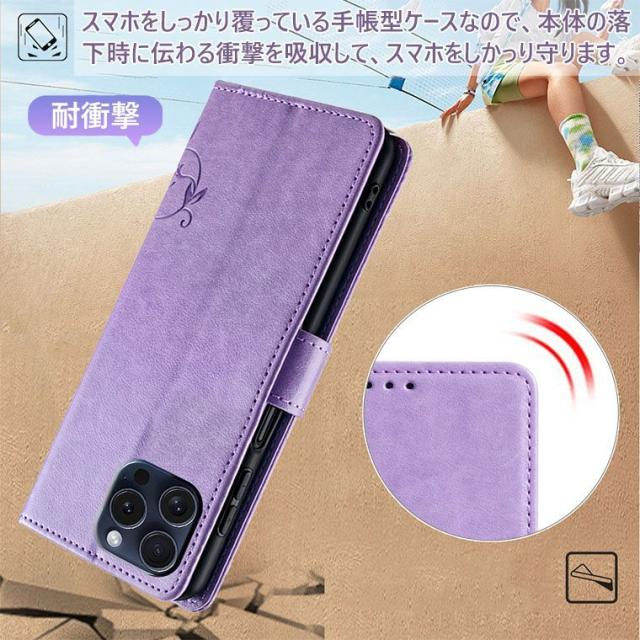 スマホをしっかり覆っている手帳型ケースなので、本体の落下時に伝わる衝撃を吸収して、スマホをしかっり守ります。