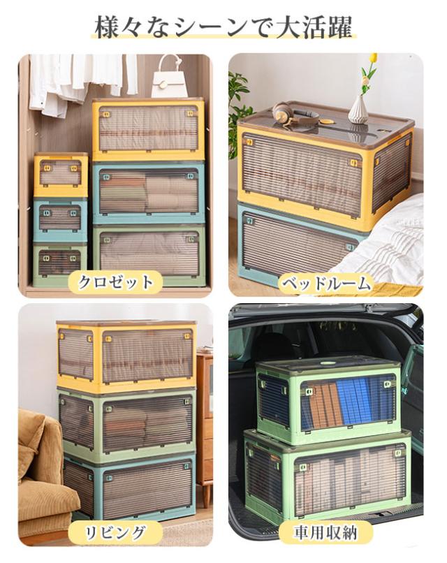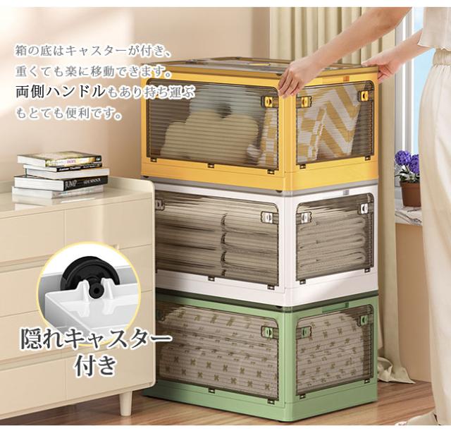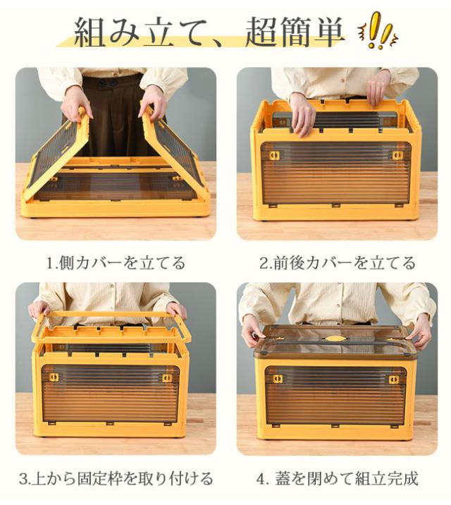 即納 収納ボックス 27L 折りたたみ 5面開閉 大きめサイズ 災害避難 隠れキャスター付き コンテナー 組立簡単 プラスチック agesugi_sis