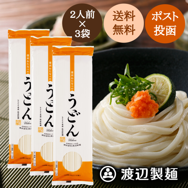 信州わたなべのうどん(250g)×3袋 おためし ポスト投函 送料無料 乾麺 メール便 保存食 ネコポス ポイント消化[M便 0/1]