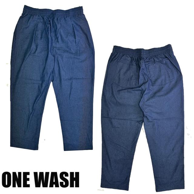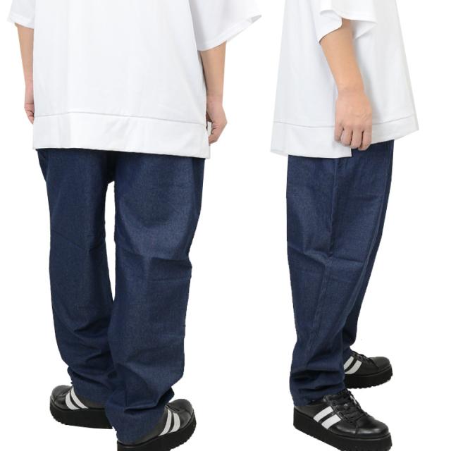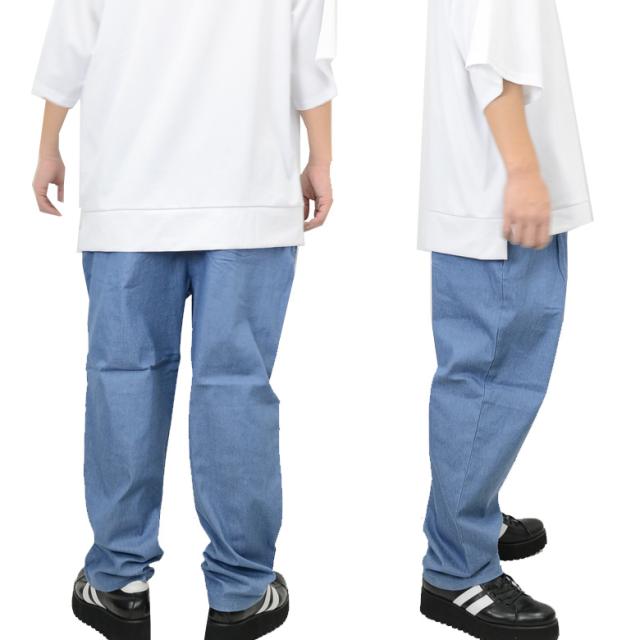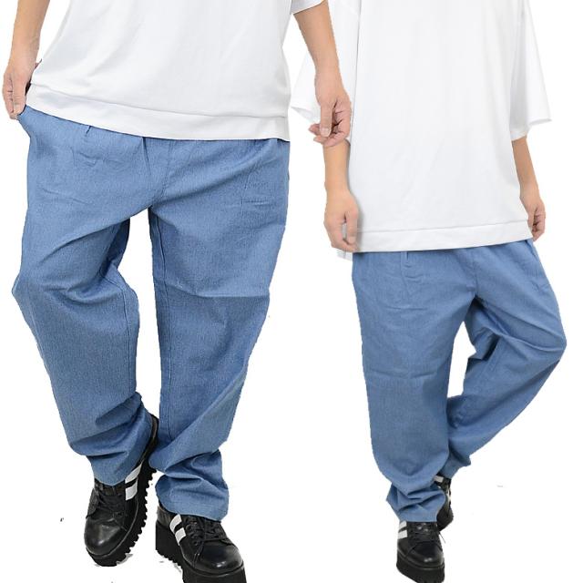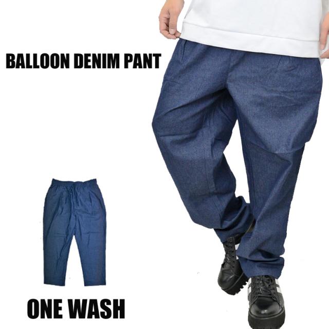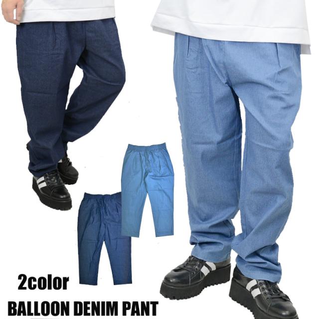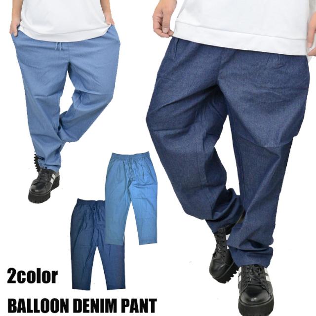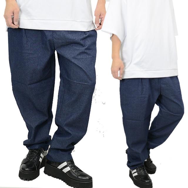 【閉店セール】デニム バルーン イージー ワイド デニム パンツ ジーンズ h110703 部屋着にも使える万能パンツ!メンズ ロングパンツ ワイド ゆったり 無地 ウェストゴム イージーパンツ カジュアル M L XL パンツ ブルー インディゴ