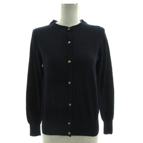 【中古】イエナ IENA カーディガン ニット 丸首 長袖 金ボタン コットン ネイビー 紺 レディース
