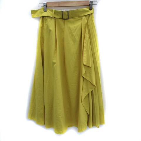 【中古】ミミ&ロジャー フレアスカート マキシ丈 ロング丈 プリーツ 切替 ベルト付き 黄 イエロー /SM19 レディース