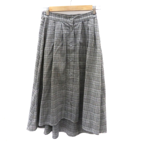 【中古】オリーブデオリーブ ボタンダウンスカート フレアスカート グレンチェック柄 M ブラック レディース