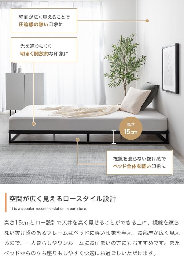 高さ15cmのロータイプ設計で、お部屋を広々と見せることができ、特にワンルームや一人暮らしに最適です。ブラックカラーはモダン・インダストリアルなテイストに、ホワイトカラーは北欧・ナチュラルスタイルのお部屋にぴったりで、どんな空間にも調和します。