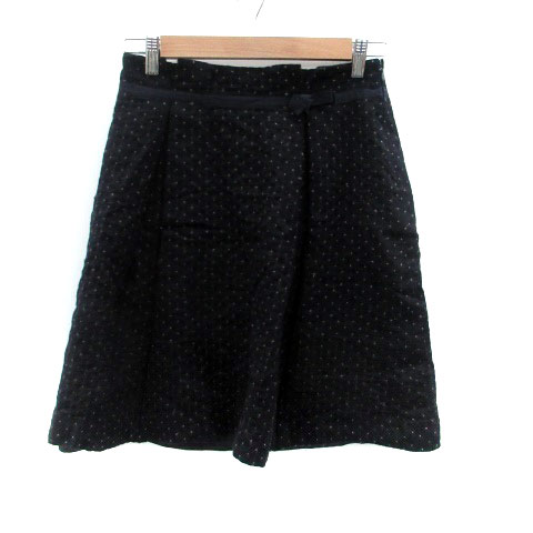 【中古】ヒューマンウーマン HUMAN WOMAN フレアスカート ひざ丈 リボン ドット柄 1 S 紺 ネイビー ベージュ