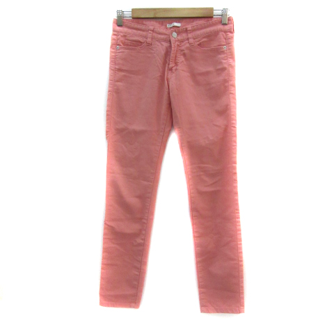 【中古】エル ELLE スキニーパンツ カラーパンツ ロング丈 無地 36 S サーモンピンク /YS10 レディース