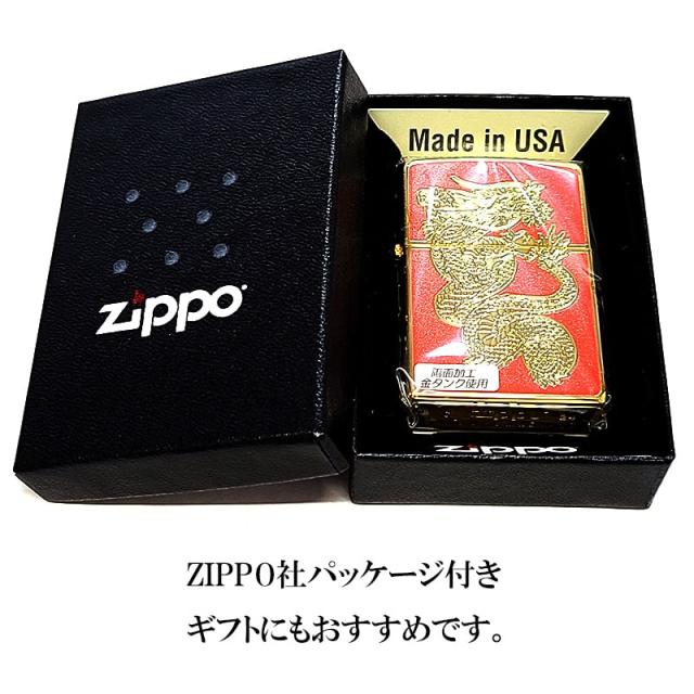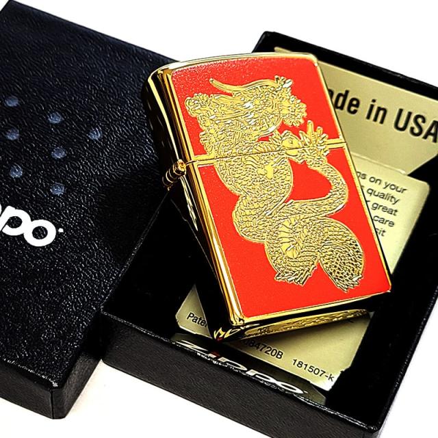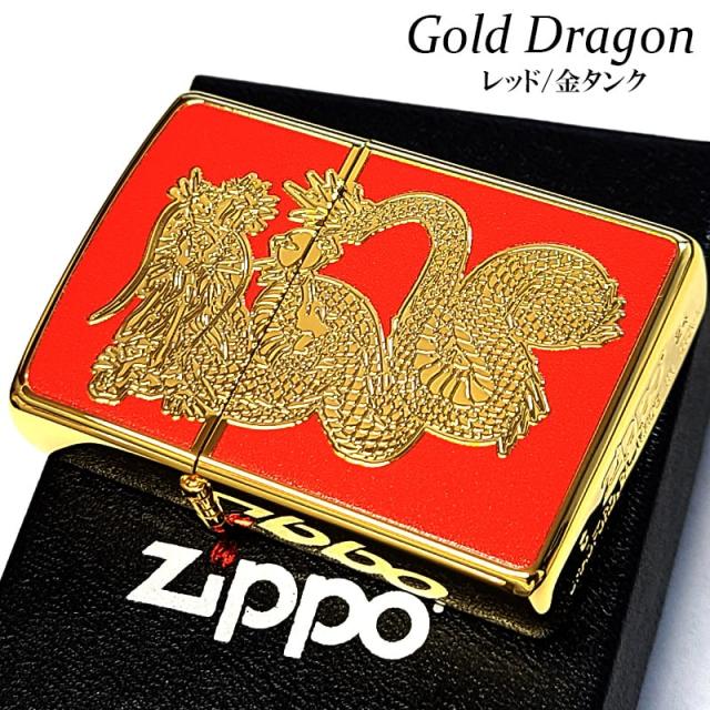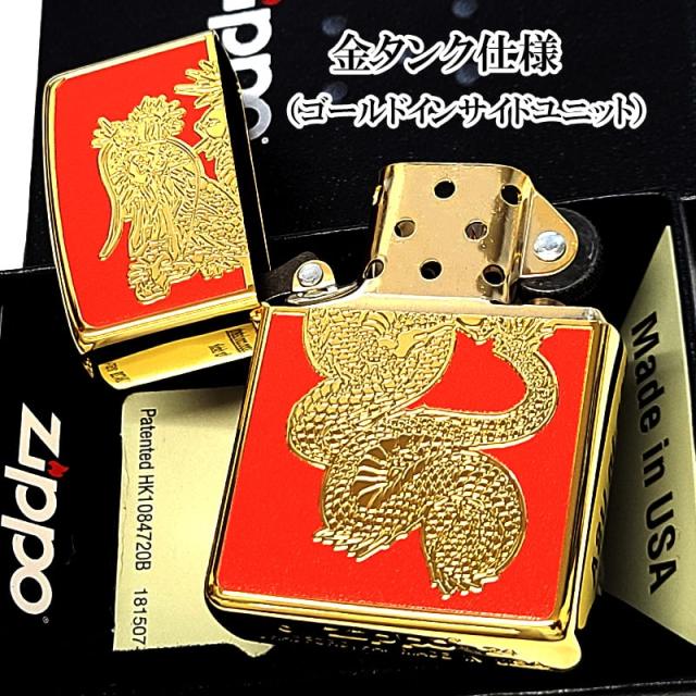 ZIPPOライター ドラゴン ジッポ かっこいい 和柄 彫刻 竜 レッド&ゴールド 龍 金タンク 赤金 干支 辰 御守り メンズ プレゼント ギフト