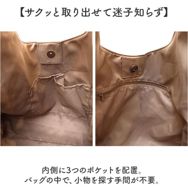 | 商品説明 | 【肩かる仕様でお出かけをサポート】 ・肩にかかる負担を抑えて、移動の多い日も疲れにくい!「ソフトラウンド肩かるトート」。 【軽やかな使い心地でストレスフリー】 ・ふんわり軽量な合皮で、肩がかる〜い!体に優しく寄り添って、持ち運ぶ際の心も軽くなる♪ 【食い込むことなく肩掛けラクチン】 ・アウターの上からでも肩に掛けられる長さのハンドル。幅広&クッション性のあるウレタン入り。 【丸みを持たせたシンプルトート】 ・まあるいフォルムに、くったりとした風合いでこなれ感アップ。どんなコーデにも素敵にマッチ。 【マグネットボタンでワンタッチ開閉】 ・力いらずで簡単◎ガバっと開いて出し入れしやすく、閉じれば中身のこぼれ落ちもガード。 【A4OK!シーンを問わず万能】 ・A4がすっぽり。程よいマチで、通勤通学やちょっとしたお泊り用、マザーズバッグとしても。 【サクッと取り出せて迷子知らず】 ・内側に3つのポケットを配置。バッグの中で、小物を探す手間が不要。 【気軽に使えてヘビロテ間違いなし】 ・シボのある本革のような仕上がりながら、お手入れは拭き取るだけ。デイリーに活躍する相棒☆ 【ポケット仕様】 ・内側:ファスナーポケット×1、オープンポケット×2 |