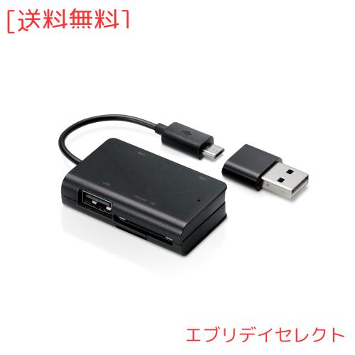 エレコム カードリーダー USB2.0 microUSBコネクタ搭載 変換コネクタ付 ケーブル一体タイプ パソコン スマホ タブレット対応 ブラック MR