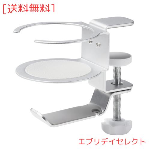 ■ヘッドホンとドリンクをまとめて収納できる、ドリンクホルダー付きのヘッドホンスタンドです。 ■ヘッドホンのハンガー部は360度回転可能でデスク下に収納できるので、使用したいときだけデスク下からヘッドホンを取り出すことができます。 ■クランプ式で、デスク下にしっかり取り付けられます。 ■天板厚み約50mmまでのデスクに対応します。 ■直径約70mmまでのドリンクを置くことができます。 ■ハンガー部にはプラグやコードを引っ掛けることができるフックが付いています。