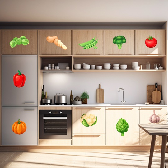 新鮮で色鮮やかな野菜のイラストが、あなたのお部屋やキッチンを楽しく彩ります!