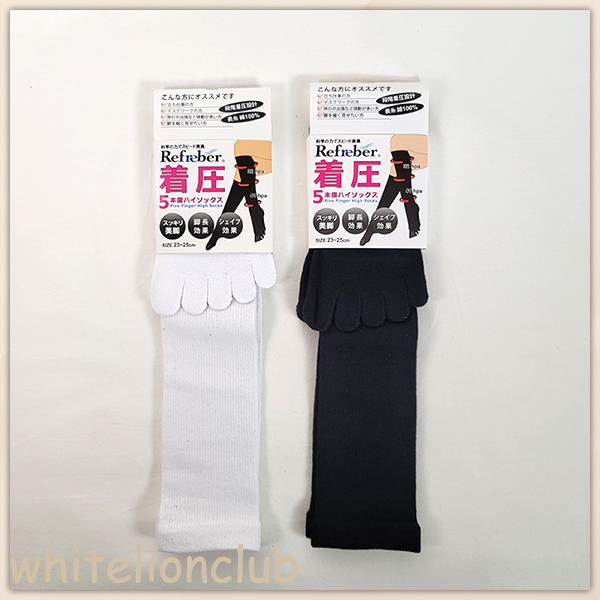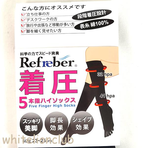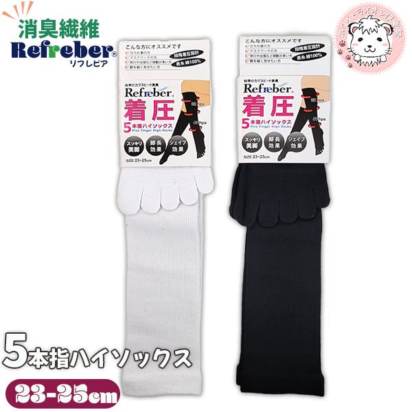爽臭 リフレビア 着圧 シンプル 5本指 ハイソックス 37cm丈 レディース 消臭 五本指 綿混 無地 23-25cm | 靴下 くつした くつ下 ソックス かかと付き 白 黒