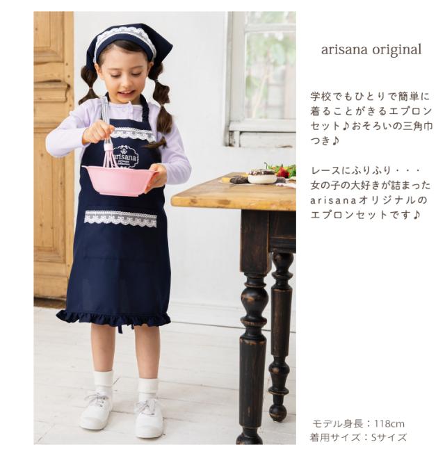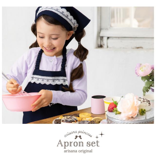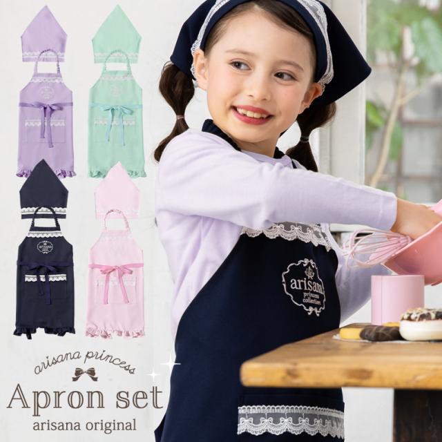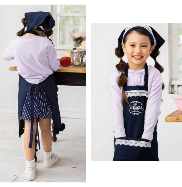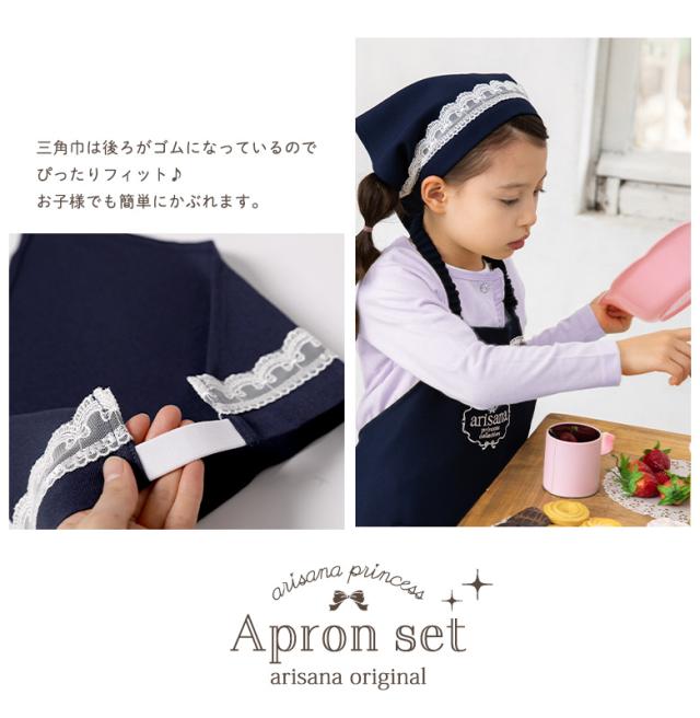 エプロン キッズ 女の子 子供 おしゃれ エプロン+三角巾の2点セット 小学生 小学校 調理実習 お絵かき お手伝い 通園 通学 幼稚園 保育園 入学準備 ピンク ネイビー ラベンダー パープル 水色 ブルー