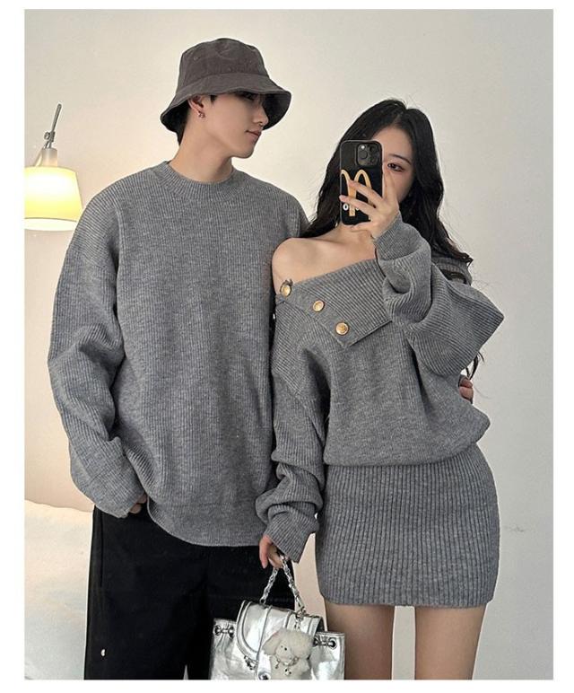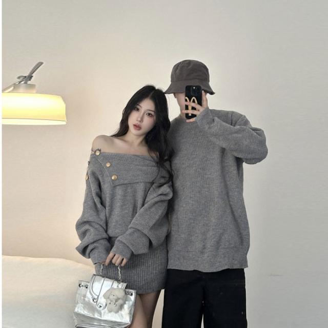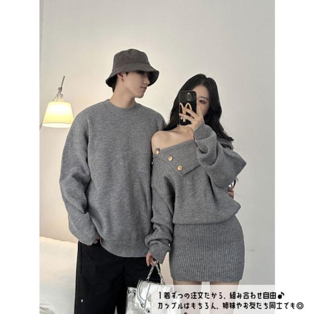 トップス メンズ レディース セーター ニット ペアルック リンクコーデ お揃い 長袖 グレー ニットワンピース ニットワンピ 秋冬 クリスマス 誕生日 プレゼント お友達 おしゃれ デート 可愛い d7087c0c0x7 d7087c0