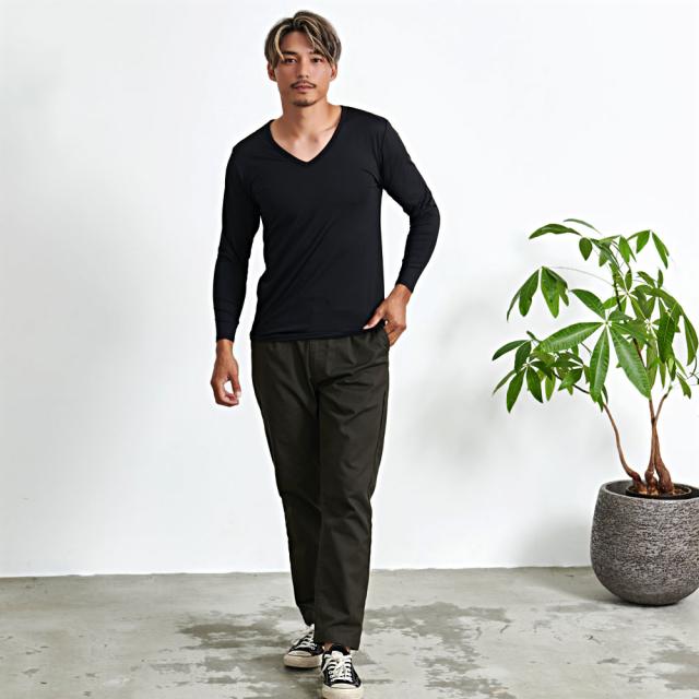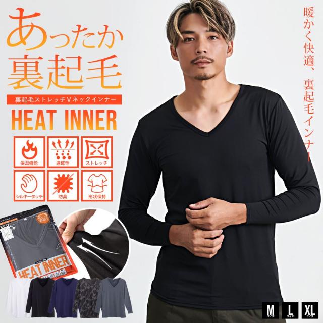 裏起毛 メンズ ヒートインナー ロンT 長袖Tシャツ あったか 暖かい 防寒 トップス カットソー 肌着 ルームウェア 長袖 Tシャツ メンズ ストレッチ Vネック 長袖 インナー シンプル 無地 大人 20代 30代 40代 ユニセックス 男性 男 服 秋 冬 秋冬 秋服 冬服 [NEK-18]