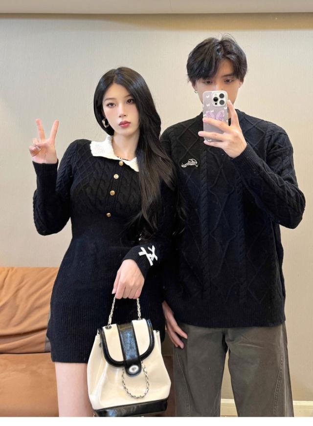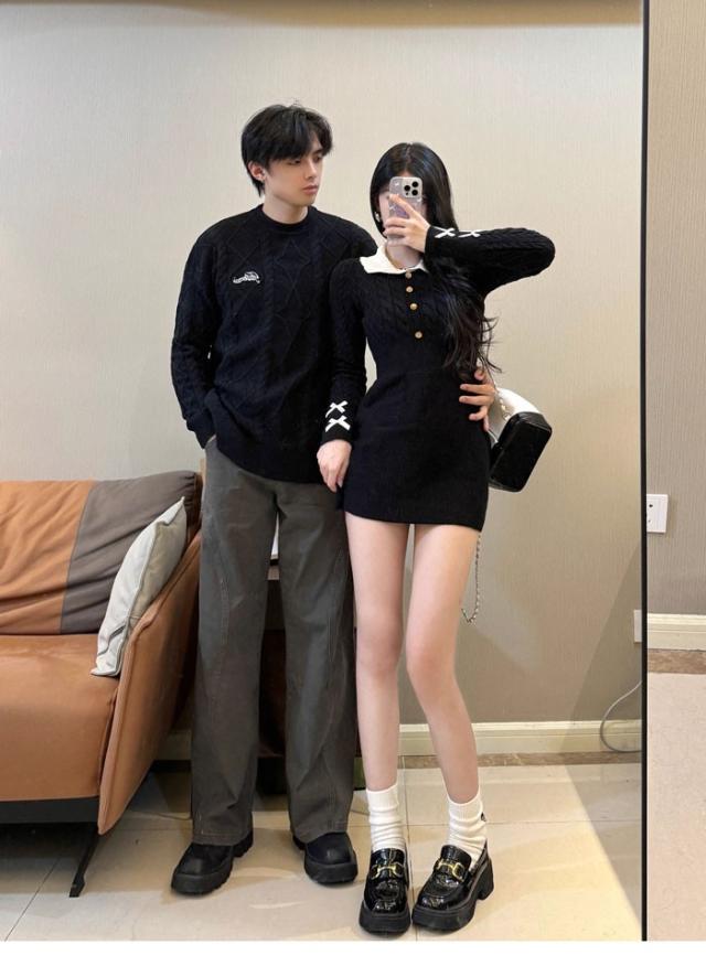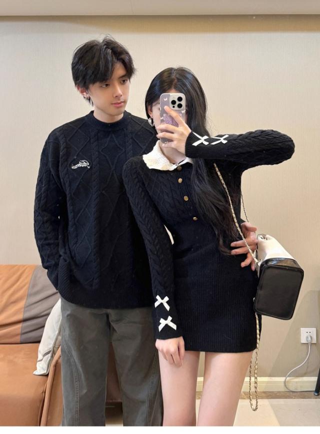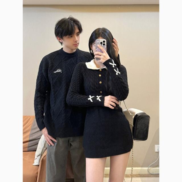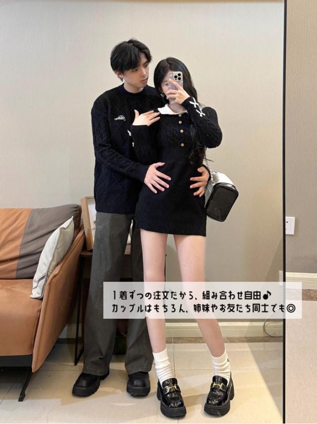 トップス メンズ レディース セーター ニット ペアルック リンクコーデ お揃い 長袖 ブラック ニットワンピース ニットワンピ 秋冬 クリスマス 誕生日 プレゼント お友達 おしゃれ デート 可愛い d7086c0c0x7 d7086c0