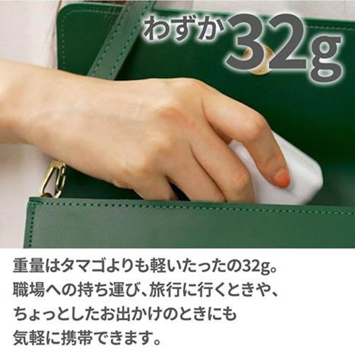 ●わずか32g:重量はタマゴよりも軽いたったの32g。職場や学校への持ち運び、旅行に行くときや、ちょっとしたお出かけのときにも気軽に携帯できます。