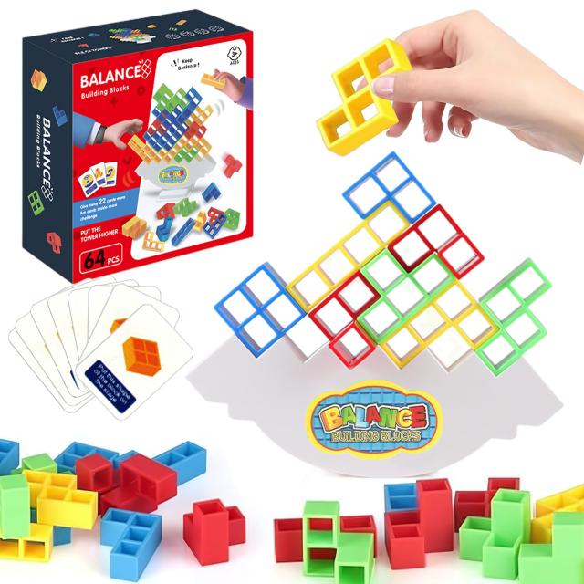 【知育玩具として】カラフルな積み木は、子供の思考力開発や、形状認識、色彩感覚などに役立てます。手と目の協調や集中力、バランス感覚、倫理的思考力などをも育てます。また、子供だけでなく、青少年、大人にも向ける楽しい対戦ボードゲームです。