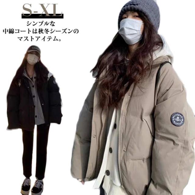 中綿ジャケット レディース ショート ジャケット コート 中綿 ブルゾン 冬アウター ダウンジャケット 韓国風 無地 シンプル 冬 アウター 冬アウター ショート丈 厚手 通勤 OL 体型カバー あったか 暖かい 防寒 ブラック ベージュ S M L XL 送料無料