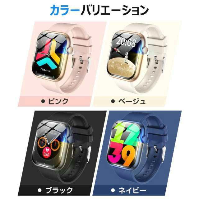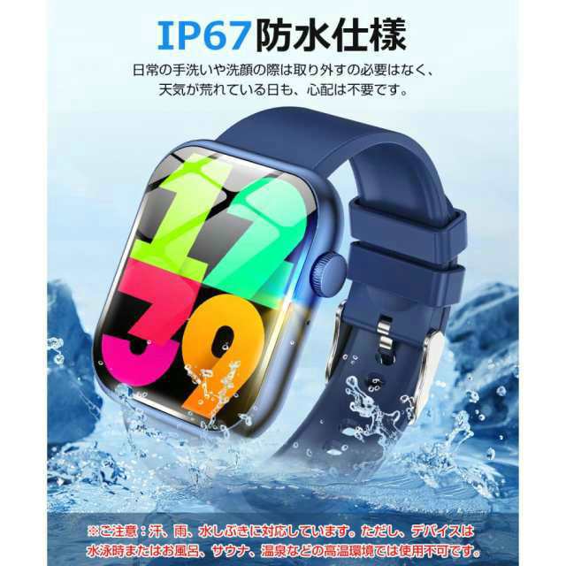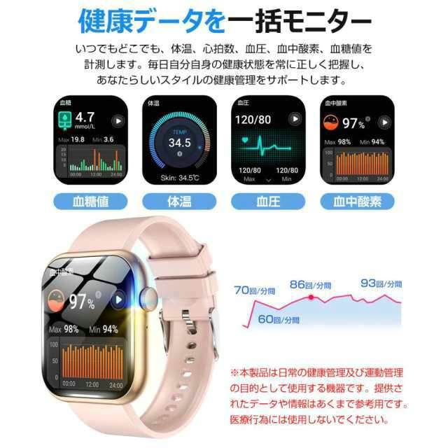スマートウォッチ 通話機能 日本製センサー 血糖値 血中酸素濃度 血圧 心拍数 体温 1.96インチ大画面 腕時計 着信通知 IP67防水