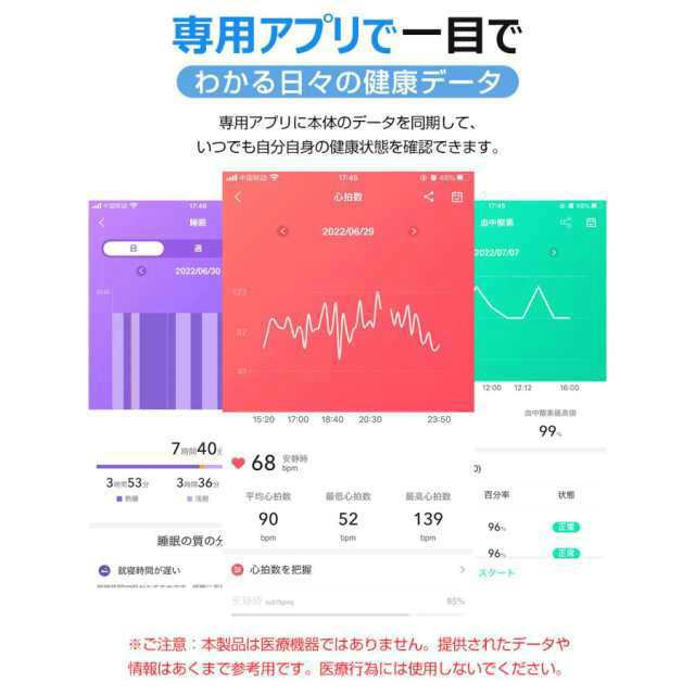 ●24H健康管理:睡眠監視や心拍数などの測定機能付き