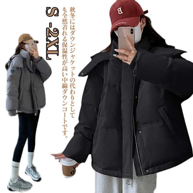 中綿コート 冬アウター 通勤 韓国風 ダウンコート きれいめ ダウンジャケット ミドル丈 中綿ジャケット フード付き キルティング ショートコート 冬服 大きいサイズ カジュアルコート 大人 秋服 OL 体型カバー 防風 中綿コート 防寒性抜群 S M L XL 2XL