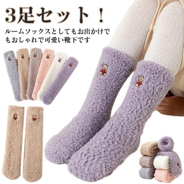 柔らか 3足セット 靴下 クルー丈 ベビー 男児 滑り止め付き 赤ちゃん ルームソックス 女児 もこもこソックス キッズ ふわふわ ボアソックス ボア靴下 暖かい 防寒対策 靴下 あったか 冷え取り 防寒 ベビー用 幼児用 ボアソックス 冬 可愛い くつした ハイソックス
