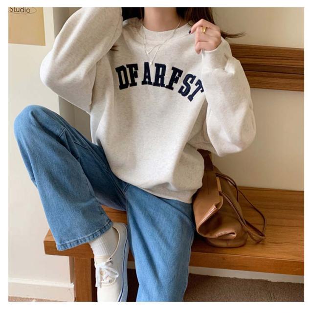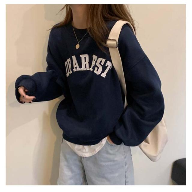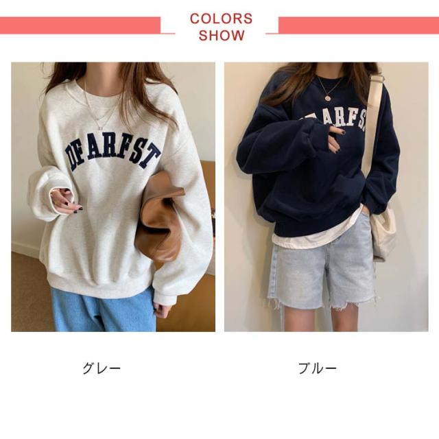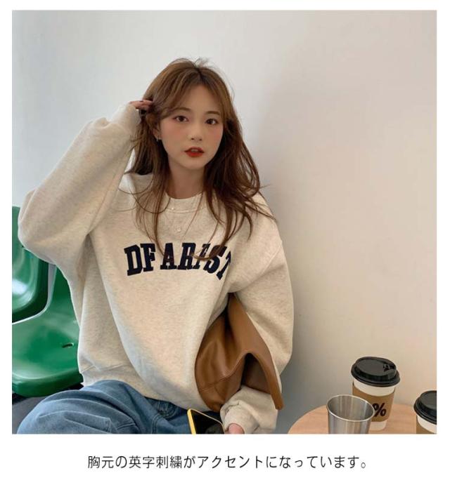 レディース トレーナー 送料無料 ドロップショルダー 大きいサイズ ゆったり アルファベット 刺繍 パーカー トップス プルオーバー スエット スウェット オーバーサイズ 春服 秋服