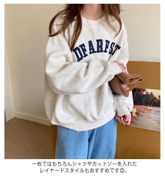 | ビックサイズのゆったりしたスウェットトップスです。 胸元の英字刺繍がアクセントになっています。 一枚ではもちろんシャツやカットソーを入れたレイヤードスタイルもおすすめです◎。 | |