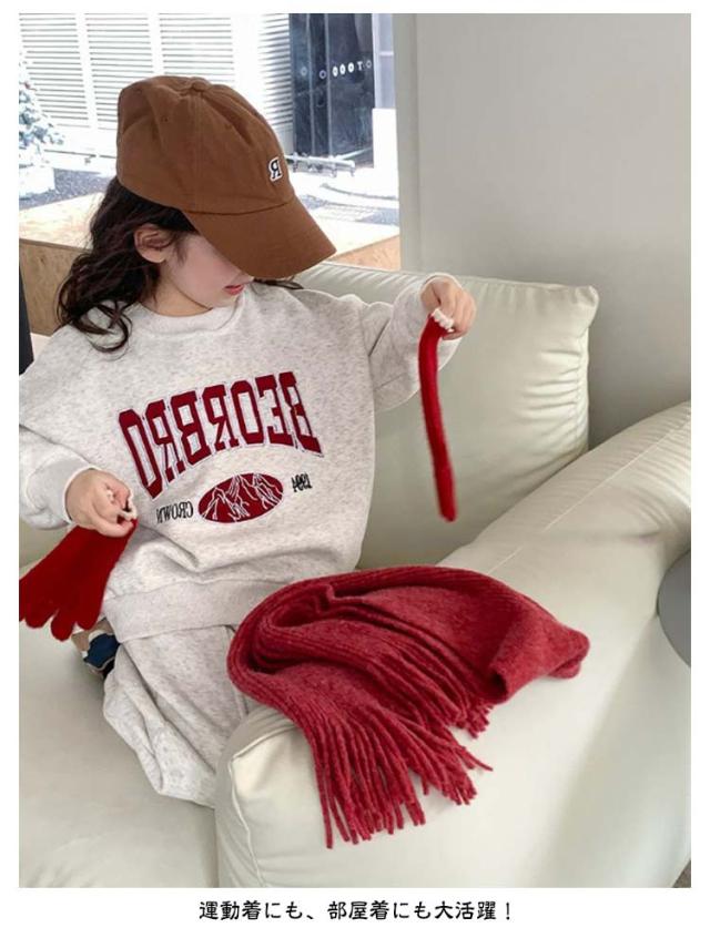 | 【子供用】【スウェット 上下セット】 首回り、袖口、裾周り、裾口はやわらかで伸縮性のあるリブ素材。 縫い目もしっかりと丈夫な作りになっています。 運動着にも、部屋着にも大活躍! パジャマやルームウェアにもおすすめですよ。 | |