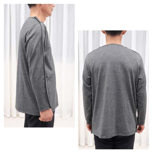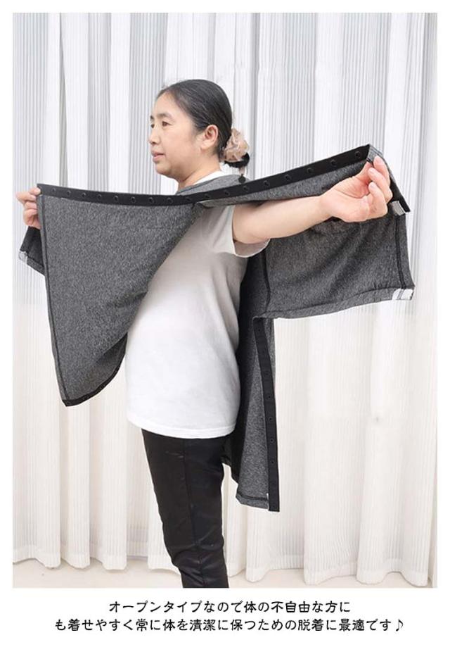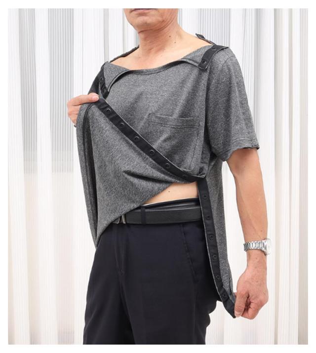 | 【全開タイプ】【介護服】【半袖 長袖】 フルオープンタイプの介護用tシャツ! 袖・肩・脇の下にスナップボタンが付いているので着脱が簡単です。 オープンタイプなので体の不自由な方にも着せやすく常に体を清潔に保つための脱着に最適です♪ フルオープンタイプなので点滴時や手術後の浮腫などの場合にもお着替えラクラク!! 通気性に優れ、汗の吸収もよく肌は常にサラサラに保てます。 普段の着用はもちろん、入院中の寝巻としてもおすすめ。 | |