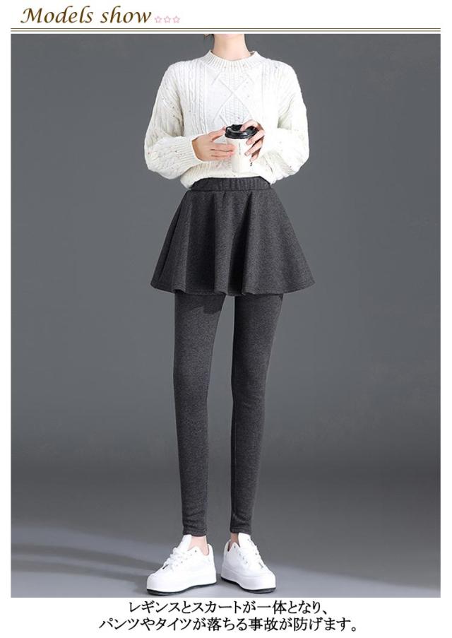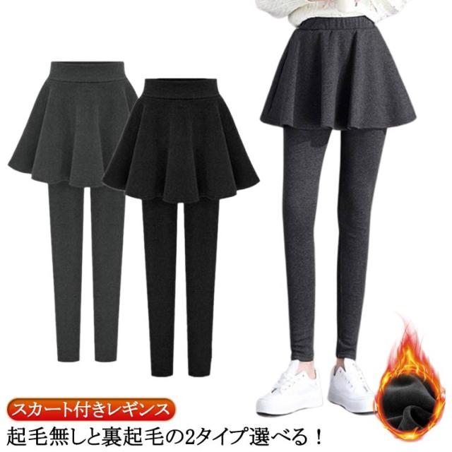 | 起毛無しと裏起毛の2タイプ選べる! レギンスとスカートが一体となり、パンツやタイツが落ちる事故が防げます | |