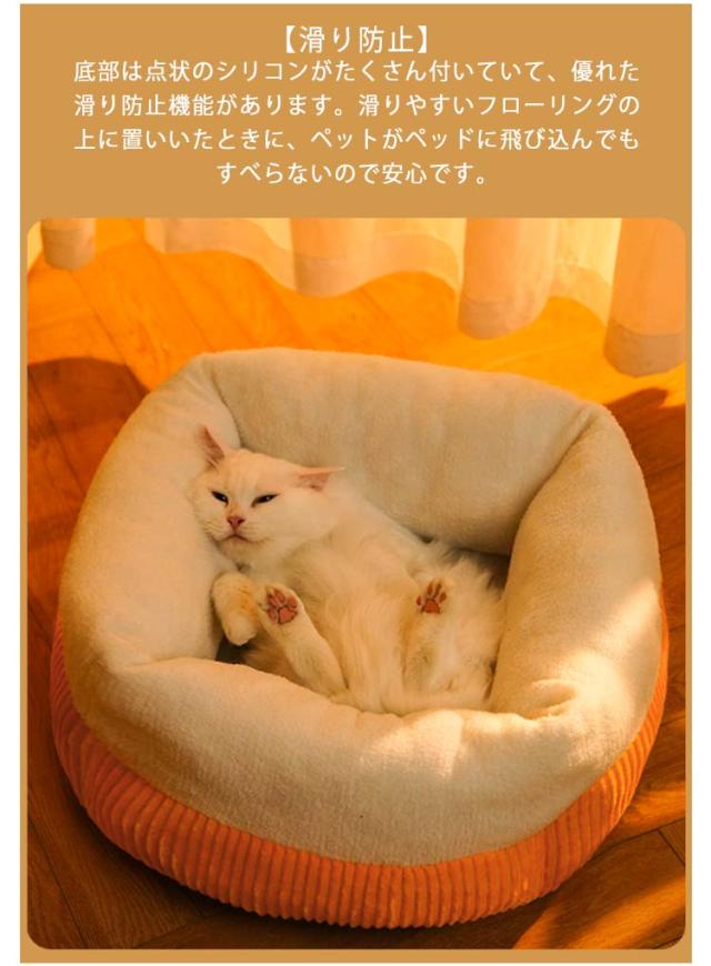 | 【ユニークな設計】 丸型の設計です。快適で柔らかくて滑らかな手触りのペットベッドです。丸型はある程度で体を包み込むような暖かさを提供しており、ペットちゃんに暖かい環境を与えます。 ? 【高品質素材】 高品質なポリエステルを採用、異臭なく、丈夫で耐久性も優れており、万が一ペットが噛んでも無毒で被害を及ぶ心配がありません。秋冬の寒さ対策はもちろん夏場のエアコンの冷え対策にも大活躍、季節を問わずオールシーズンお使いいただけます。 ? 【滑り防止】 底部は点状のシリコンがたくさん付いていて、優れた滑り防止機能があります。滑りやすいフローリングの上に置いいたときに、ペットがペッドに飛び込んでもすべらないので安心です。 ? 【丸洗い可能】 ぺットべッドは洗濯機で丸洗いができますので、汚れや臭いがついてもすぐ清潔に保ことができます。洗濯の手間がかかりません。愛犬・愛猫の健康のためには毎週洗うのがおすすめです。 | |