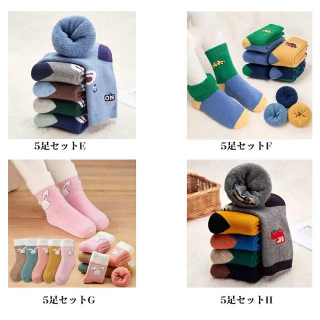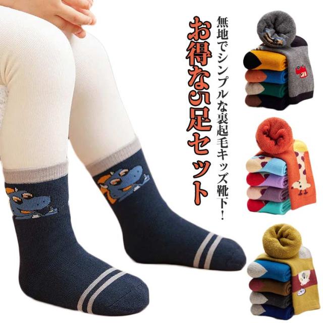 寒さ対策 ベビーソックス 裏ボア 子供ソックス ルームソックス 靴下 厚手 子ども ベビー 裏起毛 キッズ クルーソックス クルーショート丈 ソックス 赤ちゃん 秋冬 5足セット 子供用 防寒 滑り止め クリスマス くつした ギフト プレゼント 可愛い