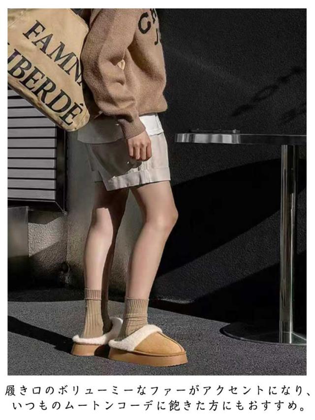 スリッポン スリッパ レディース 室内 ムートン ムートンブーツ ムートン ルームシューズ 防寒 ファー 厚底 冷え対策 屋外 冬 外履き オフィススリッパ 北欧 かわいい おしゃれ