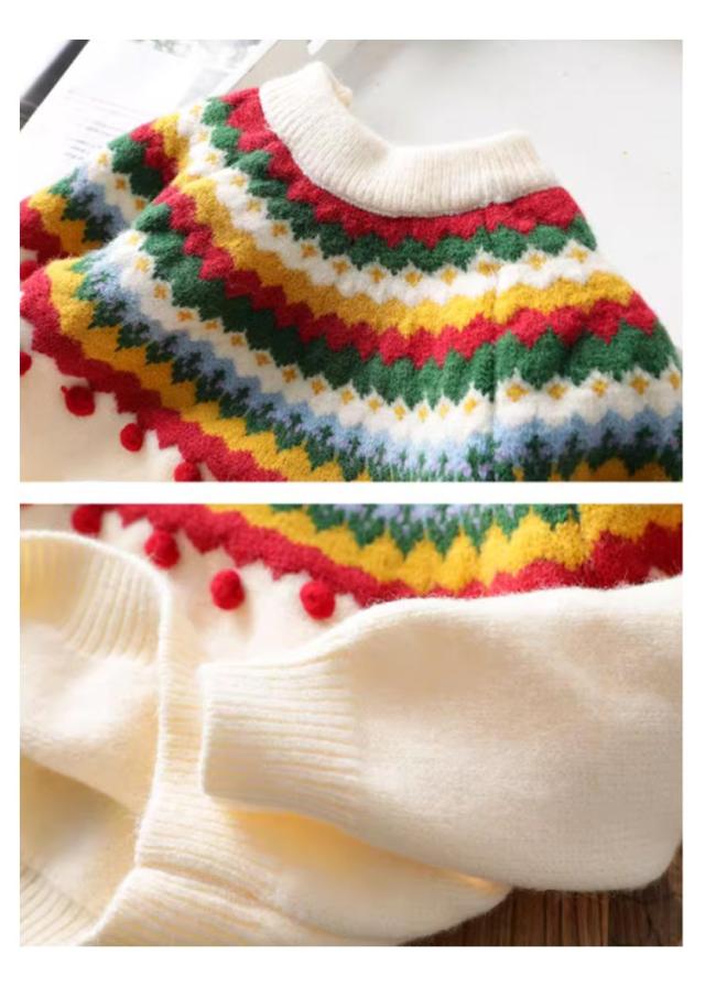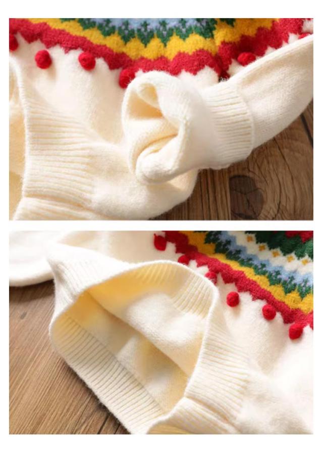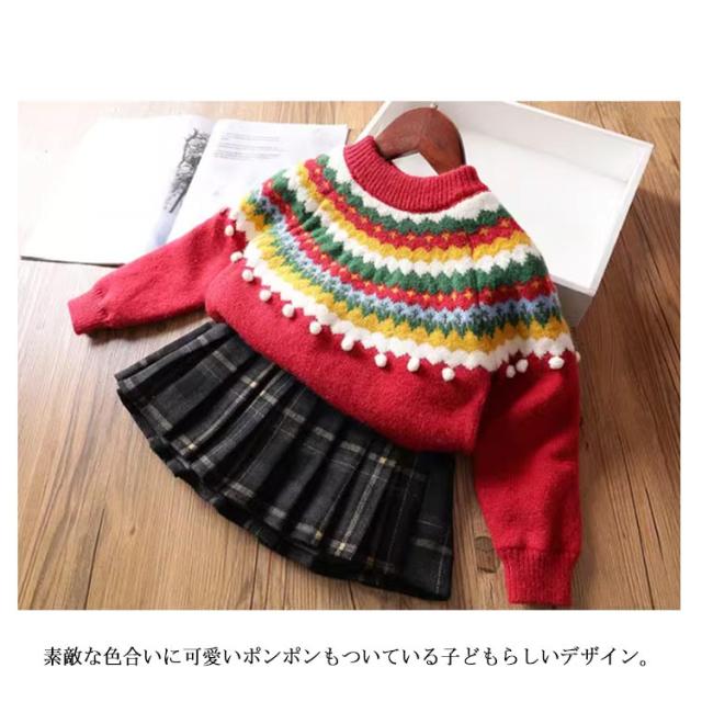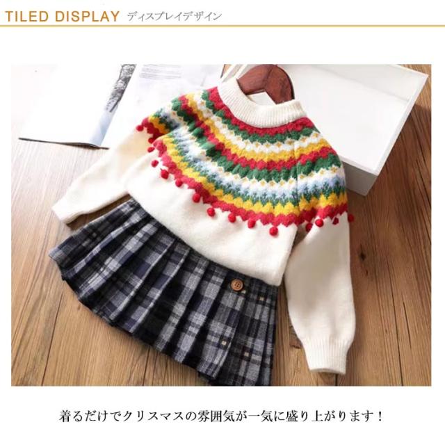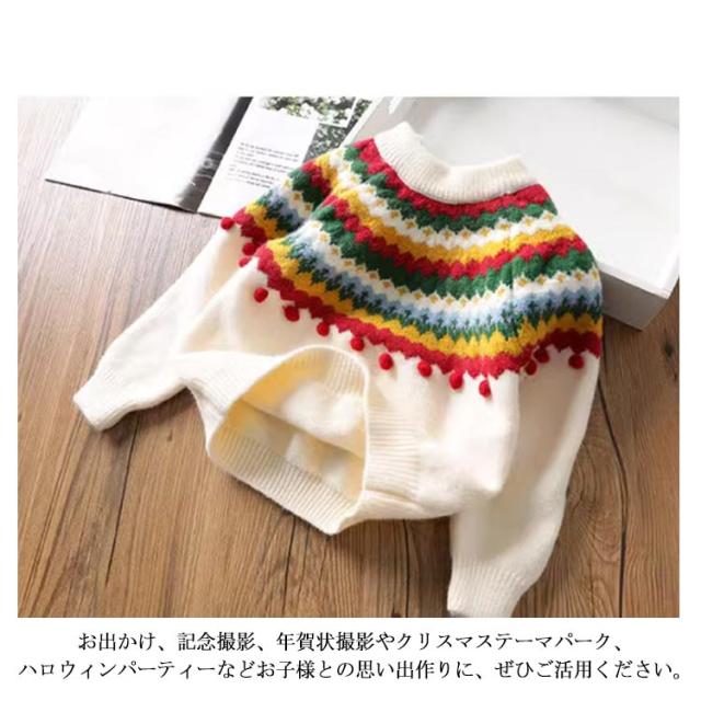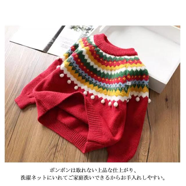 クリスマス ニットトップス 韓国 キッズ ニットセーター 女の子 写真撮影 長袖ニット 長袖 新年 プルオーバー セーター 子供服 ポンポン 暖かい クリスマスニット 年賀状 可愛い 送料無料 90 100 110 120 130 140