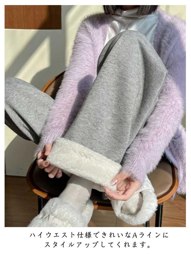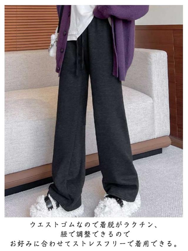 | 裏のボアがモコモコして厚みがあるので/冬の防寒対策として最適。 ワイドシルエットで、体型カバーしてくれるスウェットパンツ。 ハイウエスト仕様できれいなAラインにスタイルアップしてくれます。 裾リブなしタイプで大人っぽく合わせていただけます。 ウエストゴムなので着脱がラクチン、紐で調整できるのでお好みに合わせてストレスフリーで着用できる。 お家でのリラックスウェアとしても、ワンマイルウェアとしても活躍します。 | |