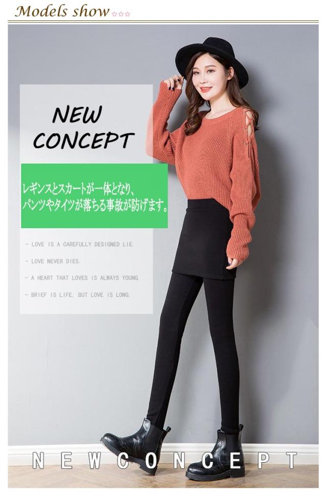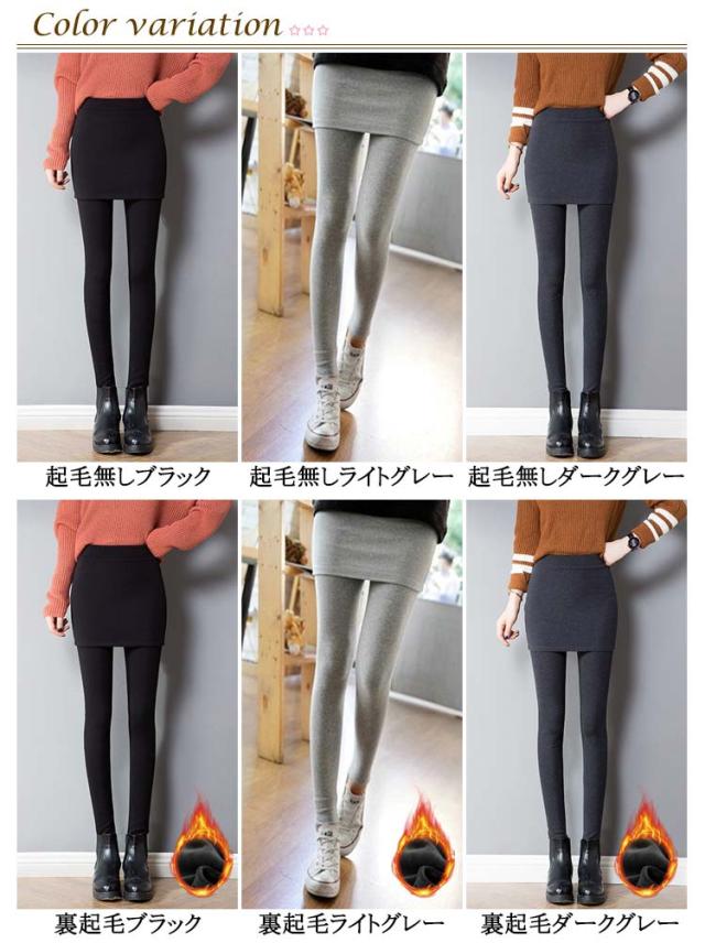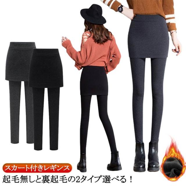 | 起毛無しと裏起毛の2タイプ選べる! レギンスとスカートが一体となり、パンツやタイツが落ちる事故が防げます | |
