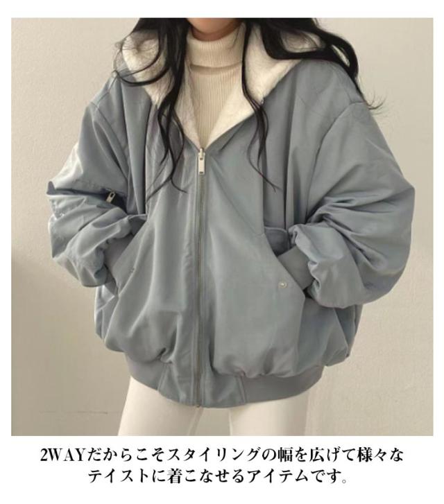フード付き 2way ジャンパー フェイクファー ボアブルゾン ボアジャケット レディース 長袖 アウター ジャケット ボアブルゾン 裏ボア 裏起毛 ボアブルゾン ふわふわ もこもこ あったか 暖かい ショート丈 コート アウター ゆったり 大きいサイズ 秋 冬 防寒 大人