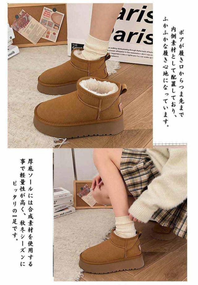 裏起毛 厚底 レディース ショートブーツ シューズ ファー 歩きやすい 防寒靴 極暖 ムートンブーツ 疲れない もこもこ ボア おしゃれ 大きいサイズ あったか 秋冬 軽量 ファーブーツ 脱ぎ履き便利 通勤 通学