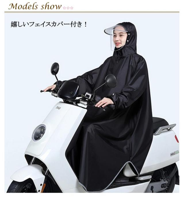| 撥水性抜群な濡れないロングユニセックスレインコート 通気設計を使用し、真夏や梅雨などの長時間着用にもベタつきなし! 嬉しいフェイスカバー付き! フードにはサイズを調節可能な仕様 便利な手カバー付き 夜間外出にも反射ラインがつき | |